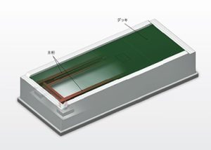 MLC-3F(ピット埋込型) 主桁・ロードセル部とも地中のコンクリートピットに設置する埋め込みタイプで、上面が地上面と同じレベル(全面フラット)になるため、スロープのスペースが必要ありません。 |